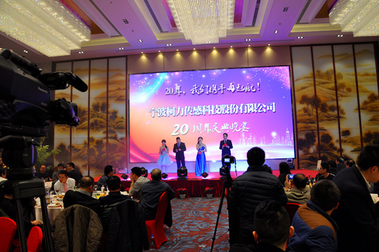 3月9日晚上,寧波遠洲大酒店三樓“遠洲廳”高朋滿座:來自全國各地的客戶、供應(yīng)商及行業(yè)嘉賓500余人在此歡聚,共同參加柯力公司在此舉辦的20周年慶典感恩晚宴活動。