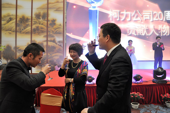 “尊敬的各位來賓、各位朋友、女士們、先生們:在這美好的夜晚,我們迎來了柯力20周年慶典。現(xiàn)在,請大家共同舉杯,祝愿諸位在寧波度過一個美好的夜晚!祝愿諸位工作順利!身體健康!闔家歡樂!萬事如意!”柯董在作祝酒詞之后,與其夫人、公司高層領(lǐng)導(dǎo)團隊副總裁兼品管總監(jiān)林德法、副總裁項勇、副總裁兼安徽公司總經(jīng)理馬形山、研發(fā)中心副主任兼?zhèn)鞲衅鳟a(chǎn)品總監(jiān)、研發(fā)中心副主任兼儀表產(chǎn)品總監(jiān)趙寧、總裁助理陳建鵬、總裁助理鄔立軍、總裁助理兼任系統(tǒng)成套設(shè)備事業(yè)部經(jīng)理胡向光,共同邀請現(xiàn)場各位嘉賓舉杯暢飲。