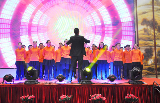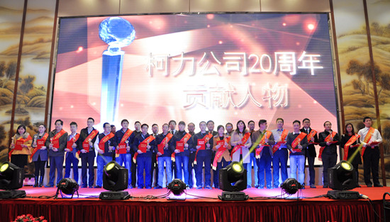 串燒開場舞立即點燃了現(xiàn)場的氛圍。晚宴節(jié)目共分歡迎、感恩、祝福、歡慶4個篇章?!痘丶业穆贰肥枪?jié)目組在3月8日當(dāng)天收集工作人員接站、接機照片,并連夜趕制的暖心視頻,讓嘉賓們感受了一種賓至如歸、回到柯力大家庭的溫暖。一曲《鴻雁》,博得了現(xiàn)場的陣陣掌聲;《光陰的故事》,通過圖片,現(xiàn)場回顧了成長,記錄了友情。緊接著,晚宴現(xiàn)場進行了“20周年貢獻人物頒獎”,大屏幕播放了來自各部門、子公司當(dāng)選人員的主要事跡,充滿了正能量。頒獎之后,老員工代表彭燕經(jīng)理分享了自己20年的心得,并代表老員工們感謝了公司長期以來的關(guān)懷,還感謝了客戶、供應(yīng)商、行業(yè)領(lǐng)導(dǎo)一直以來對公司發(fā)展的支持,最后,她希望新員工們能夠為公司的發(fā)展再接再厲。之后,《一路上有你》,表達了公司對客戶、供應(yīng)商、行業(yè)領(lǐng)導(dǎo)20年來的感激之情;業(yè)務(wù)團隊《真心英雄》大合唱,唱出了精誠協(xié)作、勇往直前的滿腔熱情。當(dāng)晚,國內(nèi)外客戶朋友也紛紛送來美好的祝福和節(jié)目,節(jié)目組收到了來自常州、中國臺灣、加拿大、烏克蘭、美國、哥倫比亞、澳大利亞、南非、伊朗等客戶朋友的賀文;并且,現(xiàn)場播放了來自俄羅斯、巴西、馬來西亞、印尼等國外客戶發(fā)來的視頻祝福及表演節(jié)目,充分體現(xiàn)了20年來公司國際化發(fā)展成果。之后,供應(yīng)商代表的《今夜舞起來》,反映了戰(zhàn)略合作伙伴對柯力20周年慶的美好祝福。中高層領(lǐng)導(dǎo)團隊《感恩的心》合唱,表達了公司對客戶、對供應(yīng)商、對行業(yè)領(lǐng)導(dǎo)的深深感激。研發(fā)團隊《柯力研發(fā)進行曲》,通過改編,體現(xiàn)了研發(fā)創(chuàng)新精神及“靜心敬業(yè)”之精氣。男生四人組《海闊天空》展現(xiàn)了柯力在未來10年、20年發(fā)展中,必將開創(chuàng)一片更加廣闊前景的豪情壯志。當(dāng)晚,除了總公司的節(jié)目之外,四家子公司也各自選派了精心準(zhǔn)備的歡慶節(jié)目:余姚太平洋《包容》個唱、余姚銀環(huán)《愛我中華》合唱,唱出了各自的特色,體現(xiàn)了母子公司文化的互通、融合;沈陽龍騰帶來的二人轉(zhuǎn)《龍騰模仿秀》、安徽柯力帶來的黃梅戲《對花》,讓現(xiàn)場嘉賓感受了地方特色文化,感受了子公司員工的多才多藝,以及他們對總公司滿滿的祝福。最后,老員工《明天會更好》大合唱,更是唱出了老員工的昂揚斗志,以及對柯力的深深祝福之情。為了更好地體現(xiàn)節(jié)目互動性,晚宴專門開設(shè)了互動點歌環(huán)節(jié)和抽獎環(huán)節(jié)。值得一提的是,互動點歌環(huán)節(jié),現(xiàn)場嘉賓踴躍點歌,上臺為大家即興獻唱,并送上美好祝福,使得整個晚宴節(jié)目精彩不斷。抽獎環(huán)節(jié)也邀請了現(xiàn)場嘉賓為大家開獎,使得現(xiàn)場氛圍高潮迭起。最后,晚宴在《難忘今宵》的音樂中進入了尾聲,隨著6組禮炮的鳴響,整個晚宴活動圓滿成功。