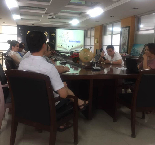 本次活動(dòng)由國貿(mào)部許經(jīng)理主持,主題是基礎(chǔ)商務(wù)英語的應(yīng)用,圍繞著Welcoming(歡迎詞)、Introduction(自我介紹)、Greetings(招呼問候)、Offering(提議)、Hotel( 酒店)、Small talk topics(閑聊話題)這幾個(gè)話題來開展。首先由國貿(mào)部許經(jīng)理用一口流利的英語歡迎大家,進(jìn)入第一環(huán)節(jié),先是由各位開發(fā)人員充分運(yùn)用自己的英語能力,介紹了自己的英語名字,個(gè)人的喜好,此環(huán)節(jié)用英語調(diào)動(dòng)開發(fā)人員表達(dá)能力的積極性,用已有的英語水平表達(dá)自己的觀點(diǎn)、意愿,使整個(gè)英語沙龍活動(dòng)沉浸在和諧的氣氛里。第二環(huán)節(jié),由國貿(mào)部業(yè)務(wù)員扮演了展會(huì)上國外客戶參觀我司展臺(tái),我司業(yè)務(wù)員接待客戶,講解產(chǎn)品功能的一個(gè)演示,表演過程中表情豐富,語言風(fēng)趣,為全場(chǎng)營造了一種活躍熱鬧的氛圍。進(jìn)入后面的Offering(提議)、Hotel( 酒店)、Small talk topics(閑聊話題)幾個(gè)環(huán)節(jié),大家選擇一個(gè)主題,用英語交流演示,此環(huán)節(jié)以一種無比輕松的不同于培訓(xùn)形式的方式給每位開發(fā)人員提供了操練口語的時(shí)機(jī),激發(fā)了開發(fā)人員學(xué)習(xí)英語的熱心。
