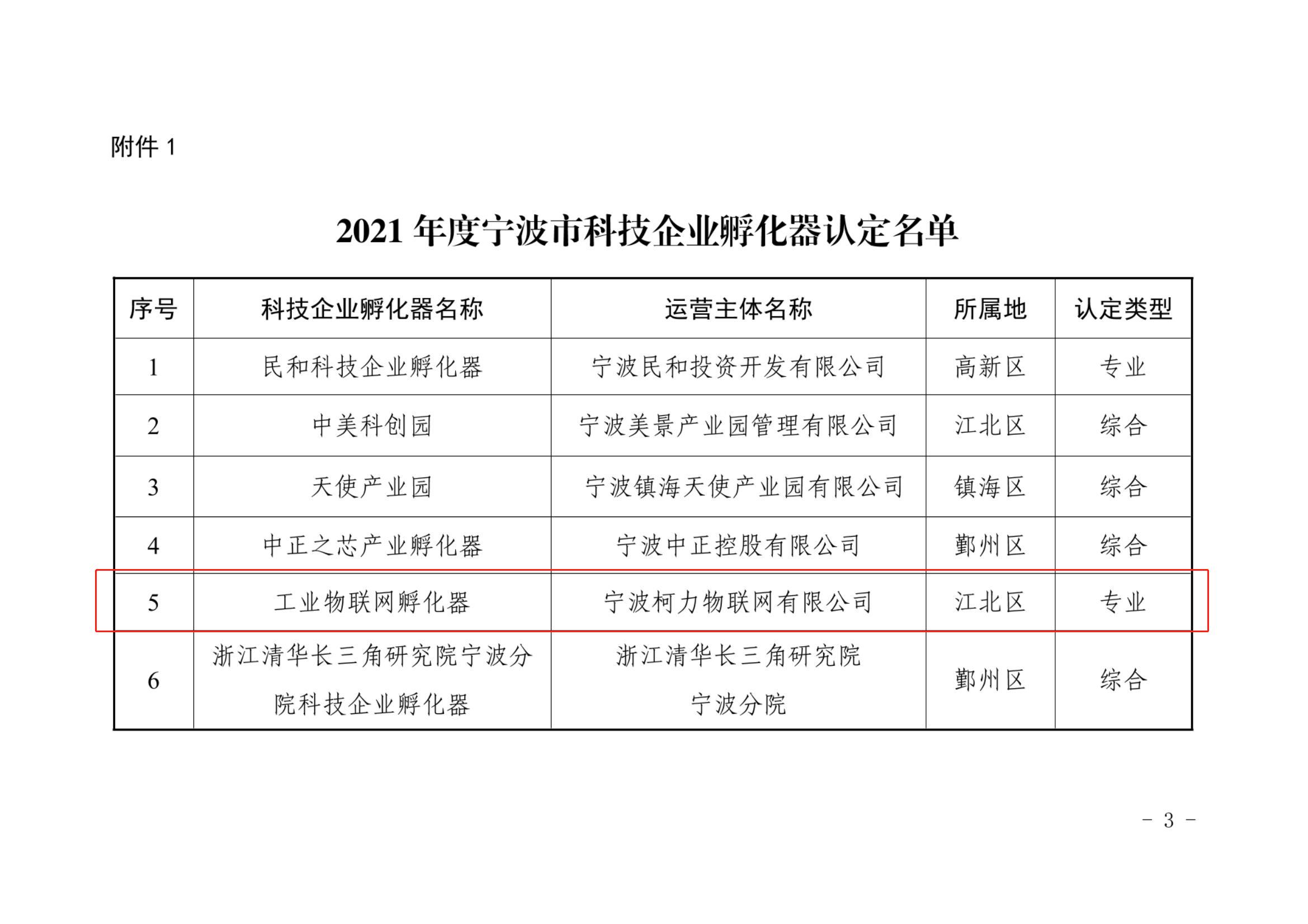經(jīng)企業(yè)申報(bào),科技部門(mén)推薦,專家評(píng)價(jià)和網(wǎng)上公示,我司全資子公司寧波柯力物聯(lián)網(wǎng)有限公司運(yùn)營(yíng)的工業(yè)物聯(lián)網(wǎng)孵化器成功通過(guò)寧波市科學(xué)技術(shù)局認(rèn)定,入選市級(jí)科技企業(yè)孵化器。