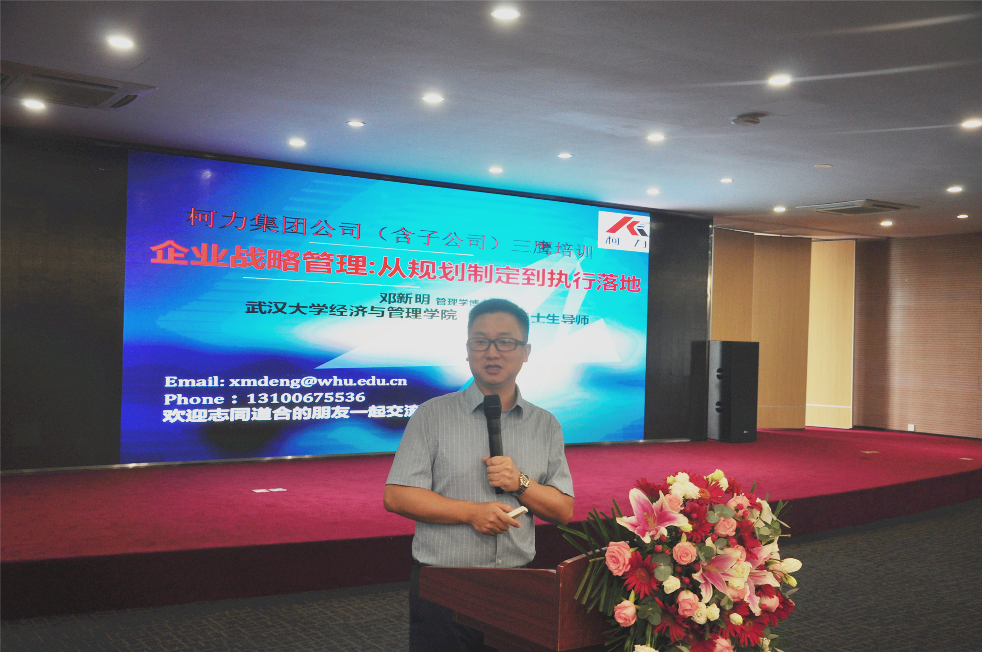此次三鷹培訓(xùn)的課程設(shè)置豐富,第一堂課首先由來自武漢大學(xué)的鄧新明教授為大家?guī)怼镀髽I(yè)戰(zhàn)略管理:從規(guī)劃制定到執(zhí)行落地》。鄧教授曾對(duì)柯力做過系統(tǒng)性的研究,并發(fā)表了研究報(bào)告,可謂對(duì)柯力有很深的了解。此次來柯力授課,鄧教授不光是從頂層出發(fā),傳達(dá)概念,更是結(jié)合實(shí)際,深入探討,學(xué)員的參與熱情頗高。第二堂課是由陳建鵬副總講授的《上市公司合規(guī)性和對(duì)子公司的要求》,陳總簡(jiǎn)明扼要地闡述了柯力作為上市公司,在依法披露與合規(guī)交易方面的專業(yè)知識(shí),引導(dǎo)學(xué)員們樹立合規(guī)意識(shí)。第三堂課是由張進(jìn)秋總監(jiān)帶來的《非人力資源部的人力資源管理+集團(tuán)化人資管理》,這堂課是對(duì)柯力人才戰(zhàn)略如何實(shí)施的專業(yè)知識(shí)梳理,方便各部門負(fù)責(zé)人以及子公司老總落實(shí)集團(tuán)人才戰(zhàn)略。第四堂課則是由審計(jì)部經(jīng)理湯偉講授的《財(cái)審體系對(duì)子公司的要求》,這也是集團(tuán)化中重要的一環(huán),學(xué)員們都聽得相當(dāng)認(rèn)真仔細(xì)。